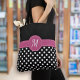 Black Pink White Monogram Polka Dots Tote Bag