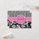 Plain white envelopes are included with paper invitations and will come to fit the invitation size you select. If you don’t need the envelopes, you may choose to not receive them by selecting the dropdown below "Envelopes" and choosing "None." If you’d like to have a design on your envelopes, you can browse all of these available envelopes to find the design that complements your Black Pink White Striped Damask Reply Card.