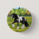 Black Pinto Piebald Gypsy Vanner Draft Horse Button
