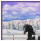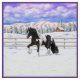 Black Pinto Piebald Gypsy Vanner Draft Horse Trotting in Snow.
