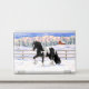 Black Pinto Piebald Gypsy Vanner Draft Horse Trotting in Snow.