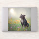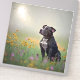 These large vinyl stickers feature a handsome black and white Pitbull against an atmospheric background.