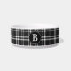 black Plaid chic preppy white stripes modern trendy monogram initial personalized dog bowl and cat bowl pet dish