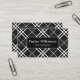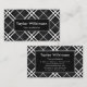 This elegant and modern business card features a black and white plaid background. The text combines modern sans serif fonts for a classy and sophisticated look.