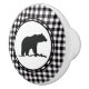 This ceramic cabinet knob is shown in a Black, White plaid with a black bear print.