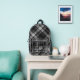 Black plaid backpack for adults or kids. All over plaid with name template on the front zipper pocket. Pine tree images, in shades of black and gray, make a little forest beneath the name. Use the name template, or don't.