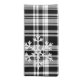 This cloth dinner size napkin is shown in a black and white plaid snowflake print design. Set of four