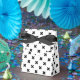Black polka crosses on white favor boxes