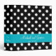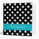 A trendy black and white polka dot pattern with teal blue is featured on this personalized wedding binder. Don't see the color you want? Use the contact link above to request your FREE color combination.