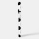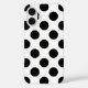 Black polka dots on a white background. But, they aren't just black and white polka dots. The black polka dots have a transparent aspect to the design so that you can change the white background to your favorite coordinating color. Add a personalized text message.