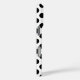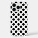 Black polka dots on a white background. But, they aren't just black and white polka dots. The black polka dots have a transparent aspect to the design so that you can change the white background to your favorite coordinating color. Add a personalized text message.