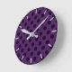 Black polka dots on plum purple round clock