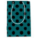 Black polka dots on teal medium gift bag
