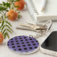 Black polka dots on ultra violet keychain