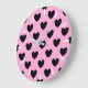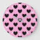 Black polka hearts on cotton candy pink large clock