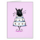 Birthdays, weddings, and showers will be a whole lot funnier with this cute card! A black Pomeranian or Schipperke pops out of a pretty white cake in this original ink and pencil illustration.