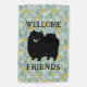 A fun Pom garden flag! Welcome Friends text can be personalized. This cute flag with floral background makes a great gift for black Pomeranian lovers.