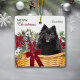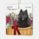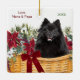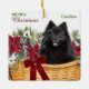 Black Pomeranian Poinsettia Christmas Basket Ceramic Ornament