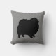 Black Pomeranian Silhouette | Grey Herringbone Throw Pillow