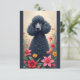 Black poodle and flowers note card.