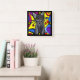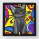 Fun and colorful wall clock, with cartoon like graphics of a pop art style black cat. Great gift idea for any cat lover.