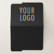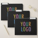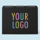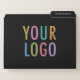 Easily personalize these sophisticated 3-tab file folders with your company logo and custom text. You can customize the inside and the outside of the folders. Includes 6 labels. Customers like the high quality print. Dimensions are 11.75 inch x 18.25 inch. Available in black and other colors. All colors are customizable. Small minimum order quantity (set of 3) and no setup fee.