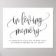 Elegant Memoriam sign featuring a pretty calligraphy script. This script in loving memory is perfect for weddings, baby showers, bridal showers and so much more. Matching items are available. Personalize by adding your own texts.