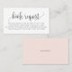 Ask guests to bring a book instead of a card with this elegant and simple book request card. It features a whimsical script and simple typography. This books for baby card is perfect for any baby shower theme and season. Personalize by adding your own details. You can further personalize the back of the card by changing the blush pink background to a photo or any other image.