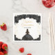 This elegant and glamorous Quinceañera birthday napkin features a beautiful princess with dark hair in a black ball gown. The text combines handwritten script and modern sans serif fonts for a classy and sophisticated look. The floral arrangements and gold confetti create the perfect blend of rustic and chic.