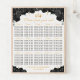 This elegant and glamorous Quinceañera table seating chart features a gold crown and beautiful black floral arrangements with gold confetti. The text combines handwritten script and modern sans serif fonts for a classy and sophisticated look.