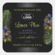 Make a lasting impression with this elegant and exotic product label design featuring shimmery purple hawaiian flowers and yellow palm leaves on a black background. A cool palm leaf shadow matching to the shimmery border frame.