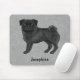 Black Pug Cute Cartoon Dog With Custom Name Gray Mouse Pad