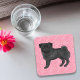 Black Pug Dog Cartoon Mops Pink Love Heart Pattern Beverage Coaster