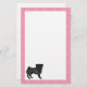 Black Pug Dog Cartoon Mops Pink Love Heart Pattern Stationery