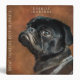 Black Pug Dog Portrait. Great thinkers keep journals. Motivational and inspirational saying/quote, (Delete or change). A gorgeous and handsome black Pug Dog digital oil painting portrait. Wearing a striped shirt and giving a side gaze/whale eye, with a dark grunge brown background. Rich neutral, earth-toned colors with a rustic and distressed look. Pugs have a remarkable and charming personality, despite its small size. Ready to be personalized with a name. The back is ready to add the year, or any other text or delete. The spine is also ready to add a subject title.