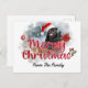 Black Pug Merry Christmas with Poinsettia Flower Postcard