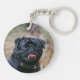 Black Pug Panting While Looking at Camera Keychain