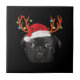 Black Pug Santa Christmas Reindeer Christmas Light Ceramic Tile