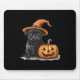 Black Pug With Witch Hat And Pumpkin Halloween Pug Mouse Pad