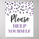 Please help yourself sign for baby shower, bridal shower, birthday party or wedding in a purple and black confetti pattern.
