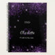 Black background, white and purple text. Decorated with purple faux glitter dust. Personalize and add your first name, monogram initials, full name and year.