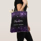 Black purple glitter monogram initials name tote bag
