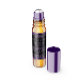 A label for perfume roller bottles featuring a black and faux purple glitter design.