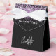 An elegant and glamorous birthday or milestone event. A black background with purple faux glitter, sparkles. With the text: Thank You! Personalize and add your name. White letters. The name is written with a trendy hand lettered style script.