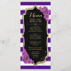 Menu Card. Classy black purple gold design with faux glitter gold. Features stripes and purple roses. Perfect for an elegant party.