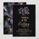 Black Purple Grey Floral 75th Birthday Party Invitation