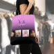 Black purple photo collage monogram tote bag