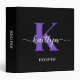 This simple, elegant black 2" capacity recipe 3 ring binder with your first name in a trendy script font in white and your first initial in a modern cap font in purple is perfect for keeping your recipes neat and tidy. It's stylish and trendy and yet very classic.