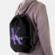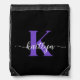 This simple, elegant black drawstring backpack with your first name in a trendy script font in white and your first initial in a modern cap font in purple is perfect for you. It's stylish and trendy and yet very classic. It will be fabulous for outings, hikes, shopping, biking, etc.