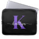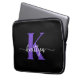 This simple, elegant black 13" laptop sleeve with your first name in a trendy script font in white and your first initial in a modern cap font in purple is perfect for you. It's stylish and trendy and yet very classic. It's unique - like you!